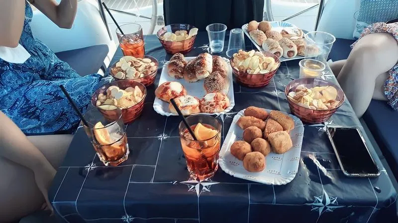 Durante l'uscita, che ha una durata di un paio di ore, potrete gustarvi un ottimo aperitivo a base di prodotti siciliani, offerto dal capitano dell'imbarcazione.