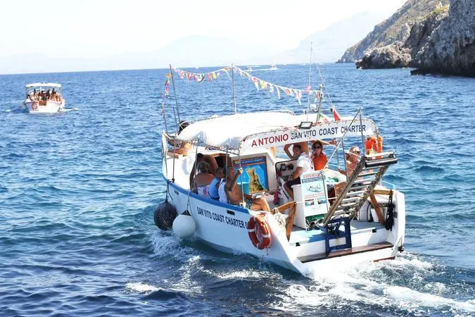 L'escursione in barca ha una durata di mezza giornata e parte dal Diporto Naurico Sanvitese di San Vito Lo Capo. La navigazione inizia con la visita della Tonnara dell'Uzzo, dove sarà prevista la prima sosta bagno. In seguito, la rotta prosegue fino alla Riserva Naturale e alla baia di Scopello, dove vi verrà servito un aperitivo a base di prodotti locali.