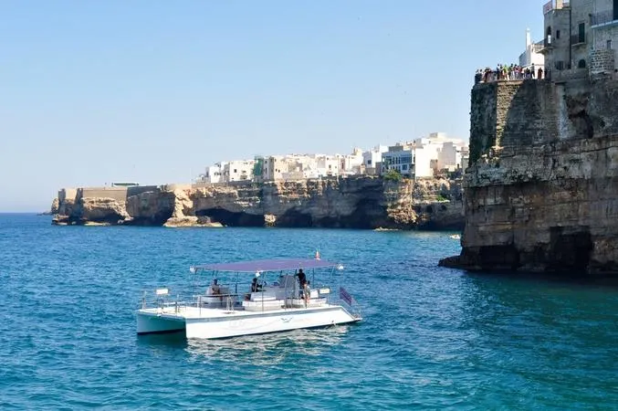 Scopri le bellezze della Sicilia a bordo di un catamarano e gusta un abbondante aperitivo lungo la costa bianca e le cale più conosciute del Mediterraneo, come la Tonnarella dell'Uzzo e le baie della Riserva dello Zingaro.