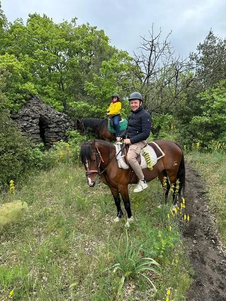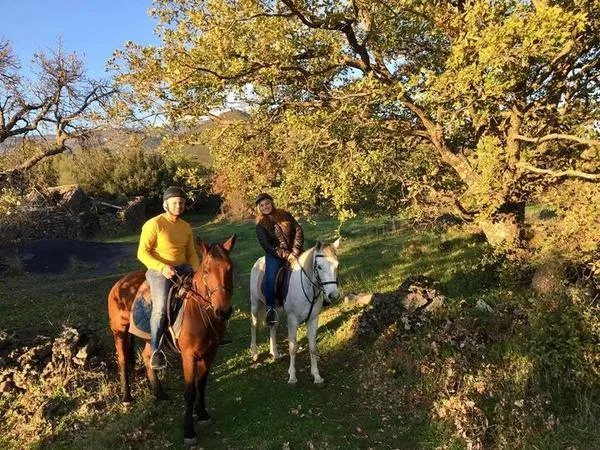 Passeggiata a cavallo nel Parco dell'Etna, fra i boschi e la natura selvaggia della Sicilia. La passeggiata da 1 ora e la passeggiata da 2 ore prevedono due percorsi leggermente diversi.
