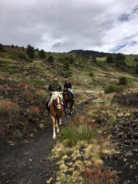 La passeggiata con monta inglese condurò infine al Piano dei Gelsi, che regala una vista panoramica esclusiva sul Monte Etna.