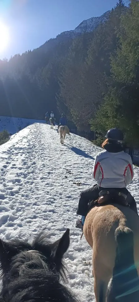 Passeggiata a cavallo vicino a Ponte di Legno, con partenza da Temù. Le passeggiate durano circa un'ora, al termine della quale si ritorna in scuderia e si fa un aperitivo.