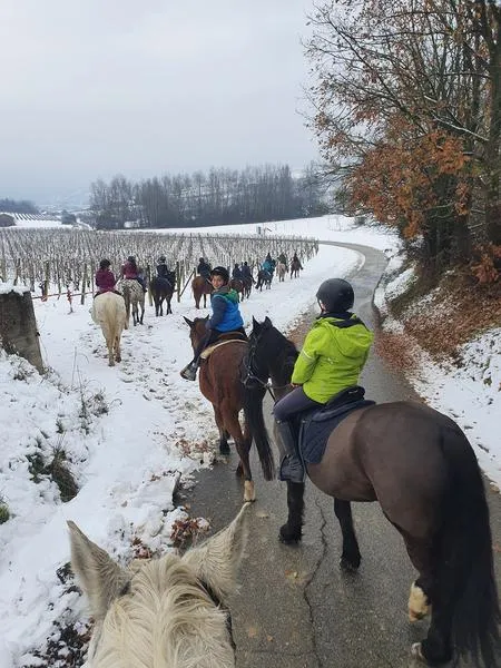 La passeggiata ha una durata di circa 2 ore e termina con il rientro in maneggio.